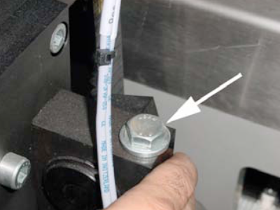 Take off the lower weld roll, unplug the grey water tube ø 10 mm labeled with “àWR” directly at the flow switch S26, and blow into the tube with air pressure. Check the out-going air-pressure at the free hole in the lower weld arm (supply for lower weld roll). If the circuit is free, you feel an equal air pressure (like on the output of the air gun) on your finger tip. If you recently took off the lower weld arm, there might be a problem with one or both o-ring seals between arm and upper bus bar: