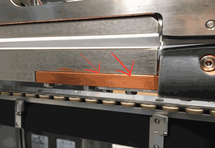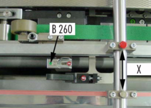 Make sure that the lateral, adjustable top guides (picture) are set correctly in lateral position as well as in height. They shall guide and hold the stripes as flat as possible over both sensors B260 and B261. Both sensors need to be reached at same time, otherwise the error will occur.