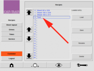 As soon as an error occurs, the destacking of the sheets stops and after an adjustable delay the wire-run and the remaining drives. The canbody transport continues to run slowly. This mode plus the flashing of the key „Production ON“ shows the operator the status of the line stop.